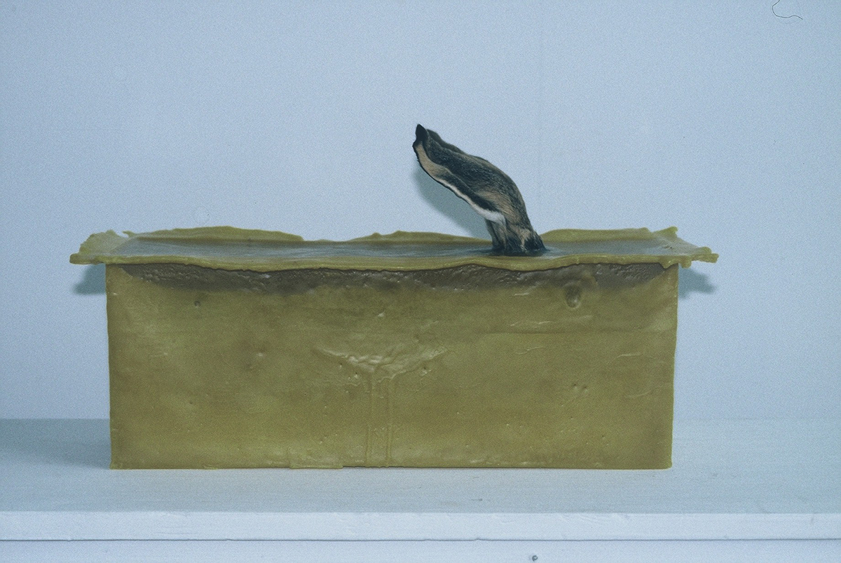 寸法・素材等:蜜蝋,野兎の毛皮/1点:H:23×W:38×D:12㎝を25個