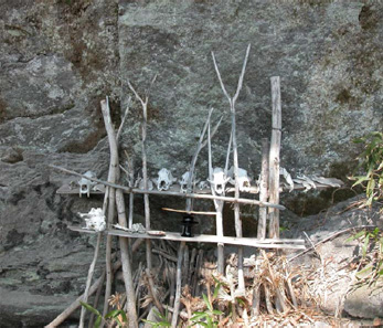 fig.1 北海道恵庭市、イザリ川本流の岩屋に設えられた熊送り場