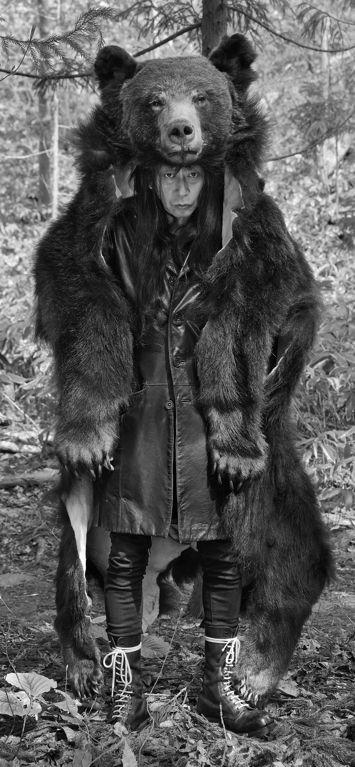 日本の民俗風習のなかでも、熊は古来より魔を払いのける力を持ち、闇の世界を鎮め治める存在として尊崇されてきた。マタギたちも山の神の使いとして、山伏達は熊の真っ黒な姿を不動明王の化身と見たり、戦国時代の武将達は陣羽織や甲冑・槍鞘にも熊の毛皮を魔除けとしたり、無敵の神獣として祀られてきた。